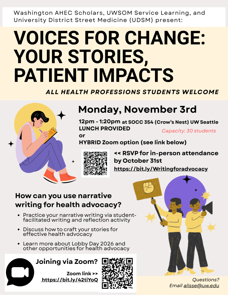 Presented by Washington AHEC Scholars, UWSOM Service Learning, and University District Street Medicine (UDSM).